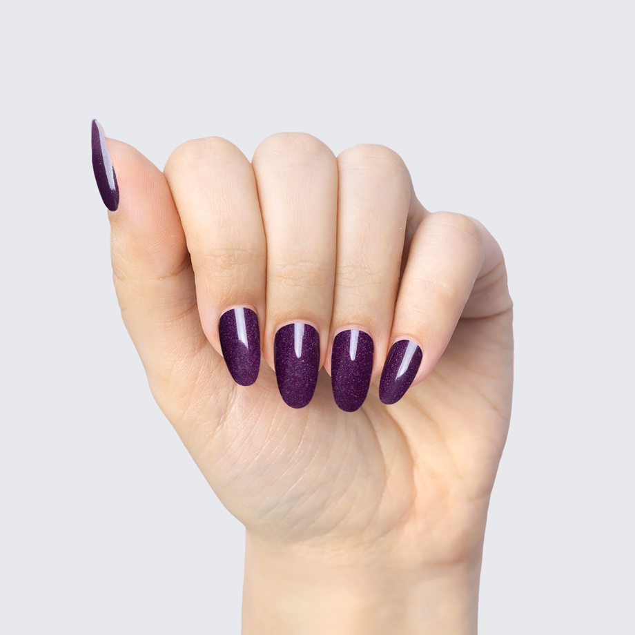 Purple. Dark. Shimmer. Semi transparent. Cool undertone.